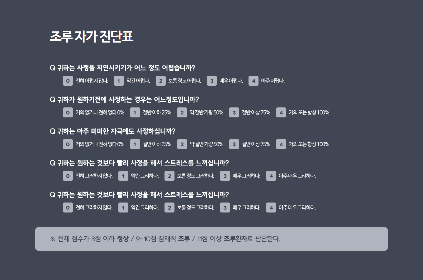 과음,과도한 흡연을 삼가야 합니다.